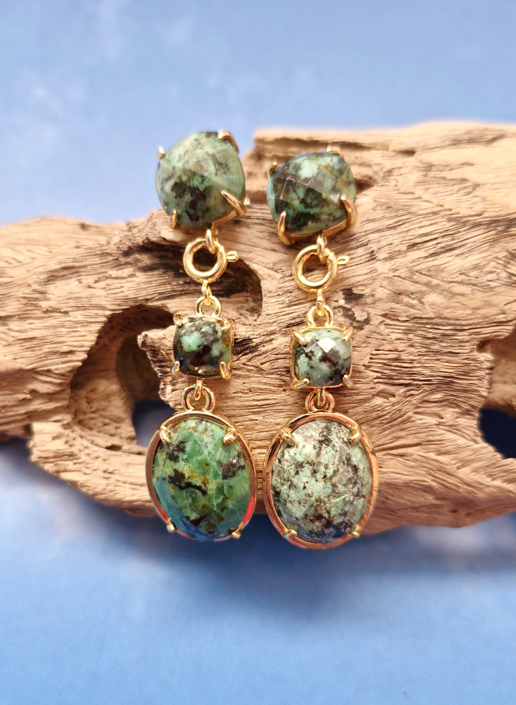 3 layer gemstone stud earrings with detachable 2 layer dangles.
