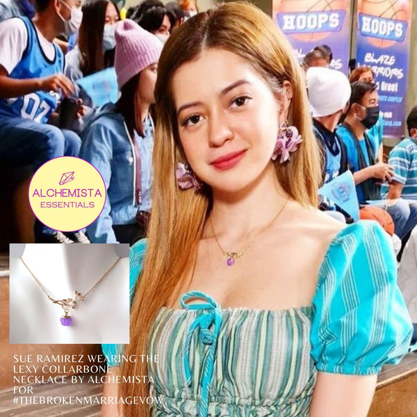 Shop Jeweled Araw Brooch PinSue Ramirez wearing our Lexy Collarbone Necklace for #TheBrokenMarriageVow