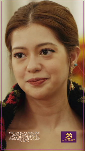 Sue Ramirez wearing our Turquoise and Feather Asymmectric Earrings on The Broken Marriage Vow TV Series